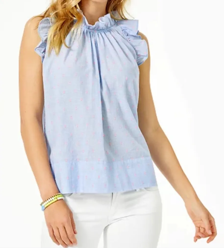 Lilly Pulitzer Kristin Top Bluebell‎ Chambray Neon Pink Clip size M Size M - $16 - From Christine