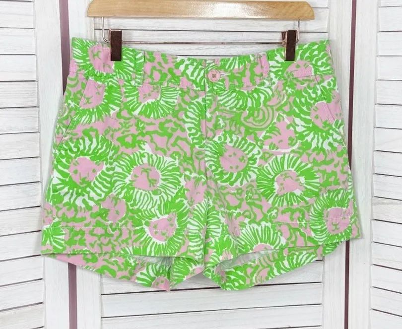 Lilly Pulitzer Callahan Shorts Cotton Chino Sunnyside Lions Pink Green Size 10 Pink & green Allo... Show more