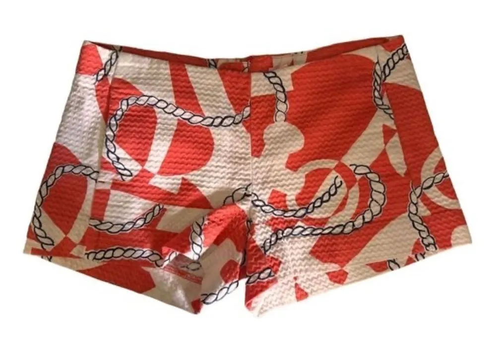 Discover the vibrant charm of Lilly Pulitzer's shorts, designed for women who love a splash of color. These multicolor shorts feature a playful nautical rope pattern, perfect for adding a touch of summer fun to your casual wardrobe. Crafted from lightweight, breathable fabric, they ensure comfort on warm days. Ideal for casual outings, beach trips, or summer parties, these chinos are a versatile addition to your closet. Size 0. Pre-owned, in excellent condition.