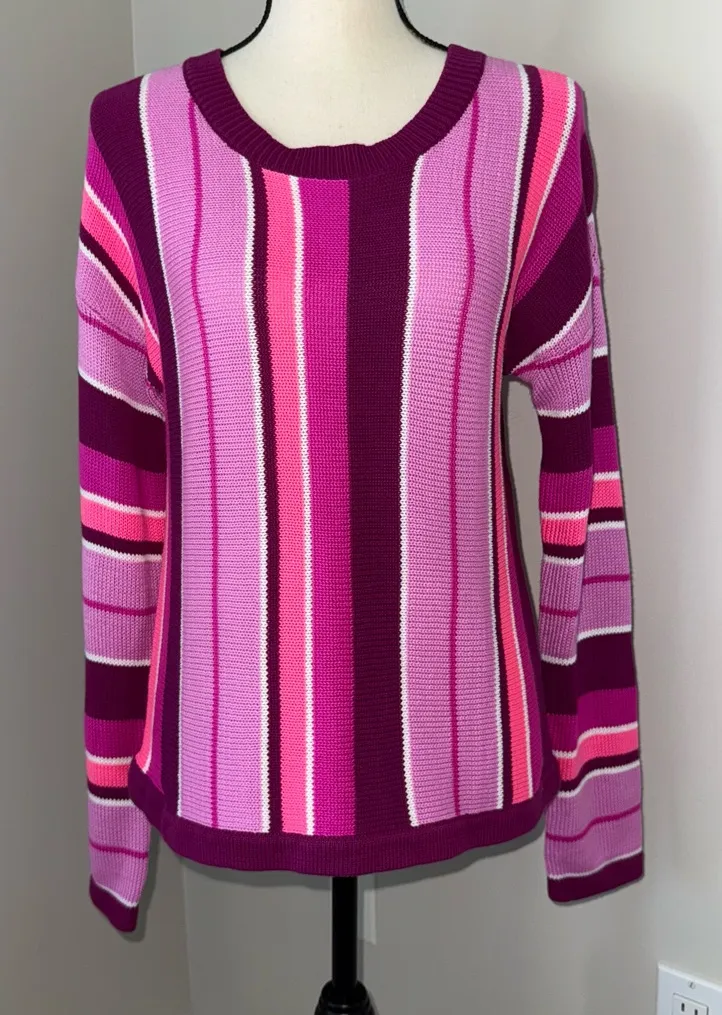 Lilly Pulitzer Daryn sweater in Bordeaux berry island jungle multi stripe. Crewneck. Long sleeve. Be... Show more