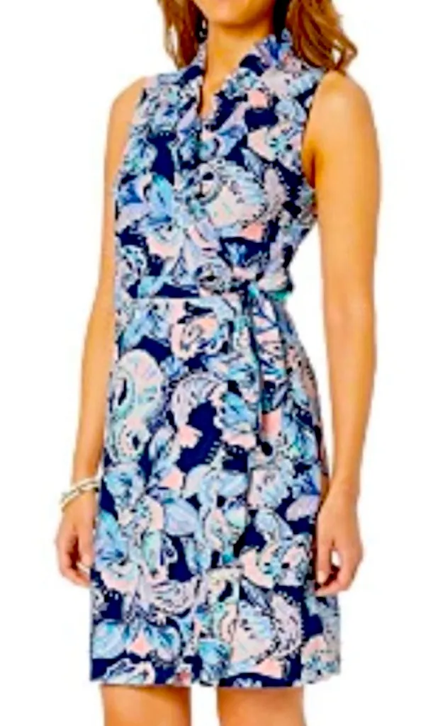 Lilly Pulitzer Romee Wrap Ruffle Dress Holy Flockamolie Blue Pink Size XL. Great condition! 96% cott... Show more