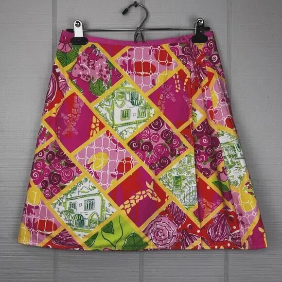 Lily Pulitzer reversible wrap mini skirt. Pink, yellow, and orange giraffe print in one side and mul... Show more