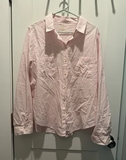 This Lilly Pulitzer Womens Long Sleeve Striped Pink White Button Up Shirt in size XL is a stylish an... Show more