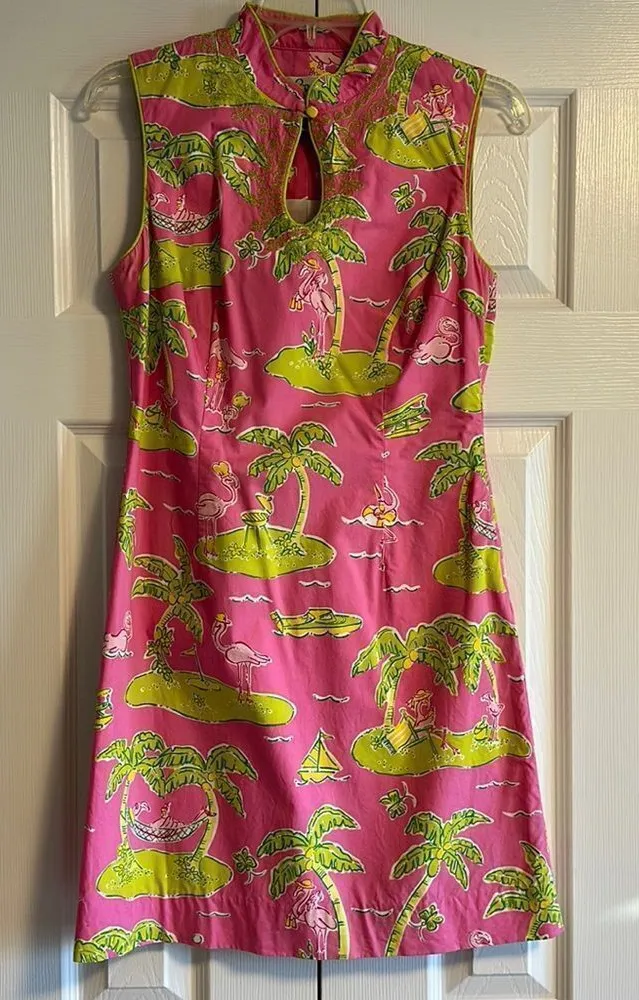 Lily Pulitzer Women’s Pink Flamingo Palm Tree & Golf Dress. Rare pattern. Form fitting. Believe it i... Show more