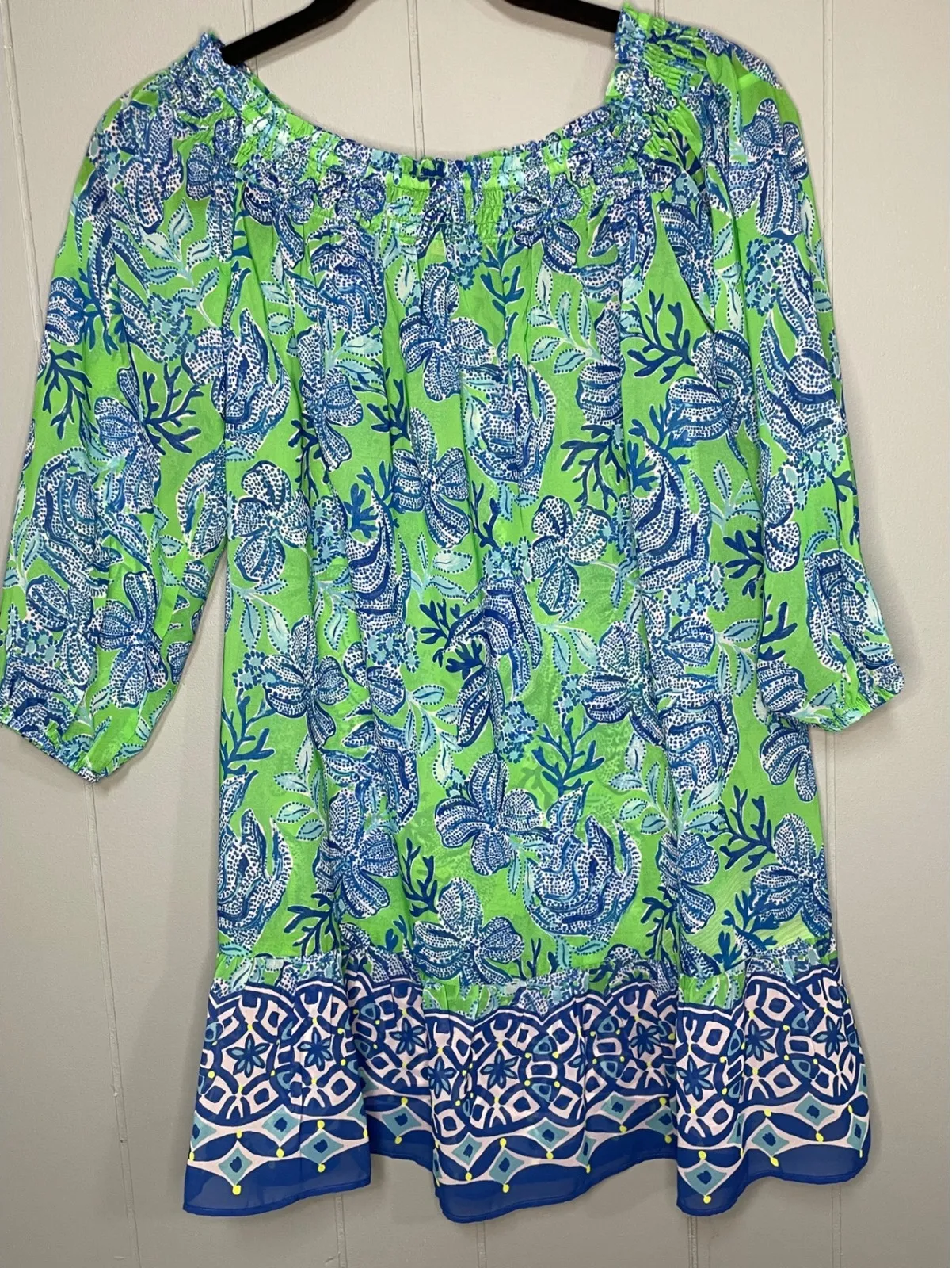 Lilly Pulitzer Maribeth coverup dress in the design "Cabana Green Keepin it Reel" Style: Beach cov... Show more