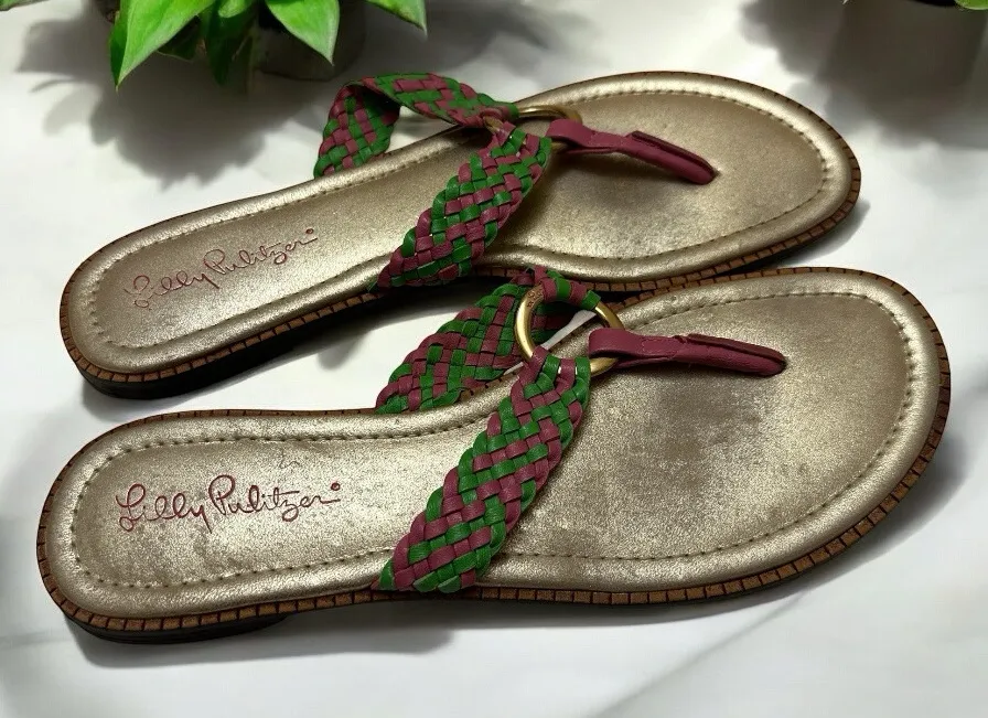 Lilly Pulitzer Mckim Pink And Green Braided Sandals Size 8 - Size tag is worn , very hard to see, b... Show more