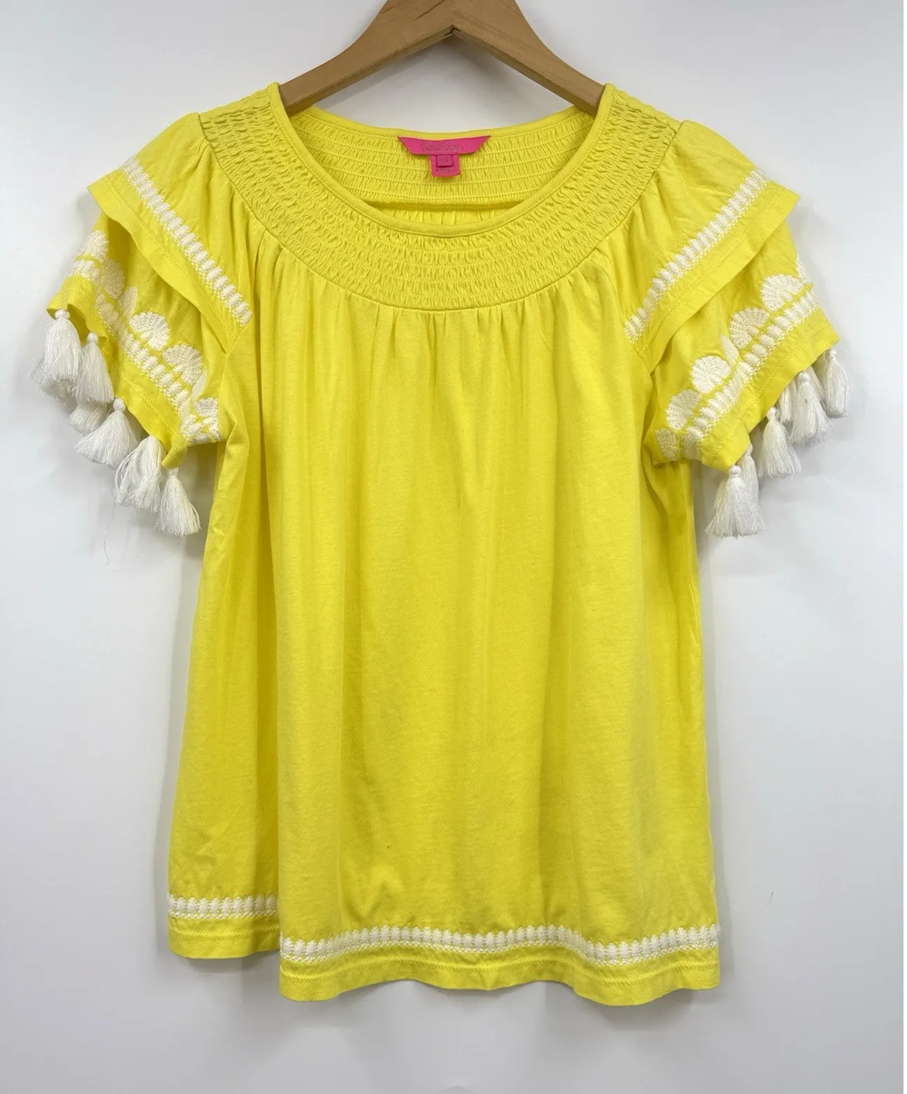 Lilly Pulitzer Nailah Yellow Tassels Short Sleeve T-Shirt Embroidered Size XS Brand: Lilly Pulitzer... Show more