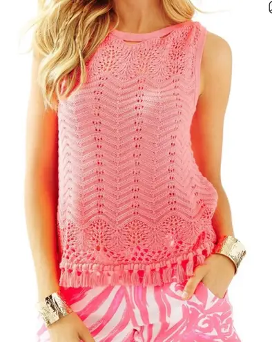 LILLY PULITZER neon Sunray pink Brooklyn fringe trimmed sleeveless sweater XS - $43 - From Lauren