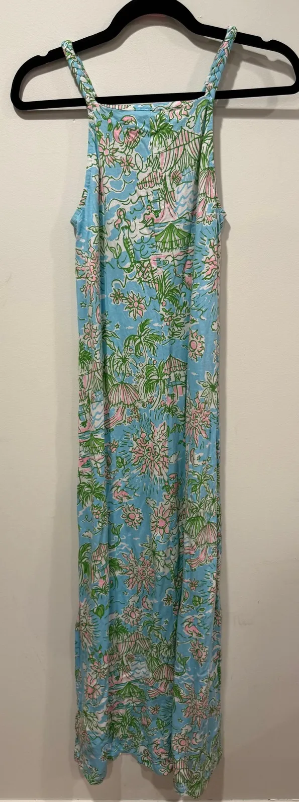 Capture vibrant island vibes with this stunning Lilly Pulitzer maxi dress. Its flowing silhouette an... Show more