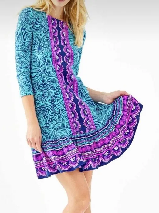 Lilly Pulitzer Ophelia Swing Dress Bermuda Blue Ocean Motion size XXS. 3/4 sleeve. Good condition, s... Show more