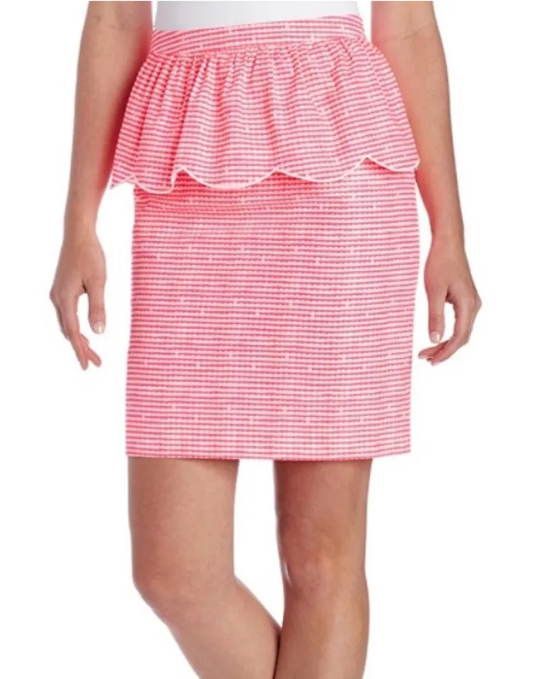 Cute pink checkered pencil skirt with scalloped peplum detail. Measurements shown in images.