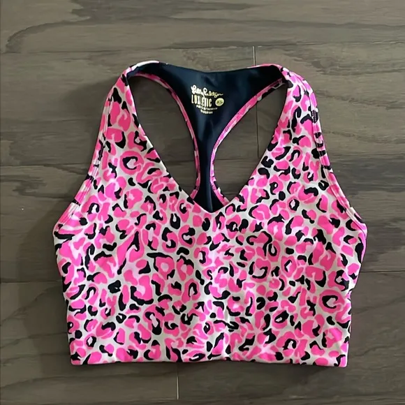 Pink animal print UPF 50+ Luxletic Lindsay sports bra from Lilly Pulitzer. Only worn once and in exc... Show more