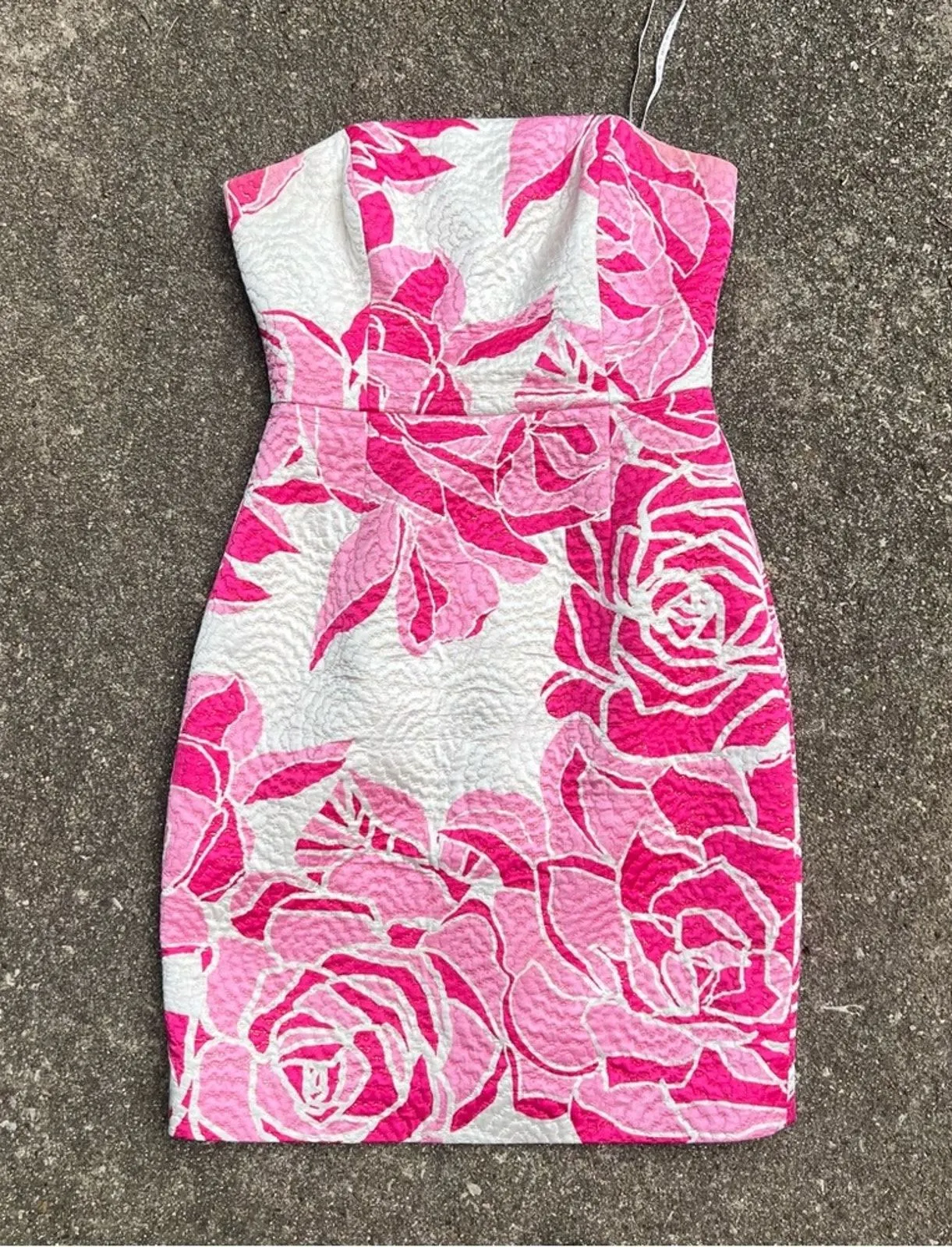 Lilly Pulitzer Pink White Strapless Silk Blend Sheath Dress Brocade Jacquard Silk metallic thread Li... Show more