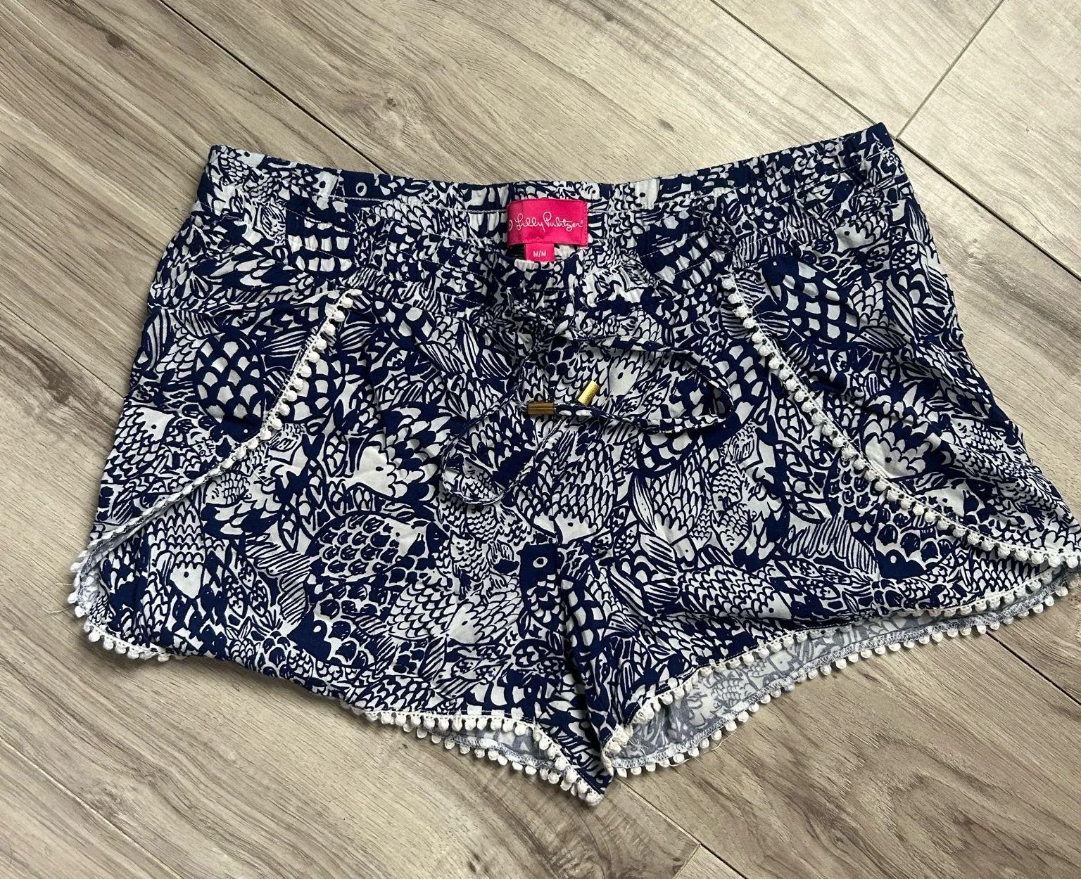 Lilly Pulitzer Pom Pom Trim Shorts Blue White Print #Resort #Preppy #Summer #coastal Stretchy wai... Show more