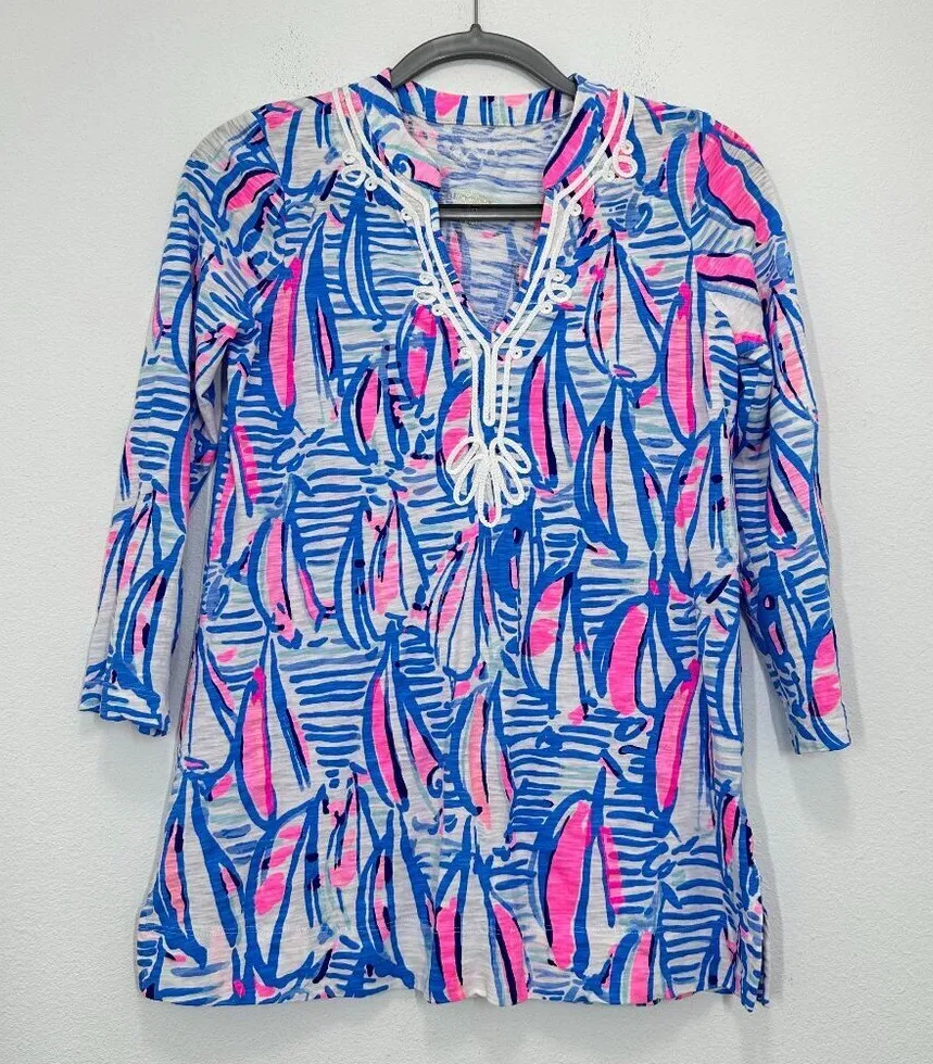 Lilly Pulitzer Red Right Return Sailboat Kaia Knit Tunic Top XS Beachy Resort Pre-Owned in Excellent... Show more