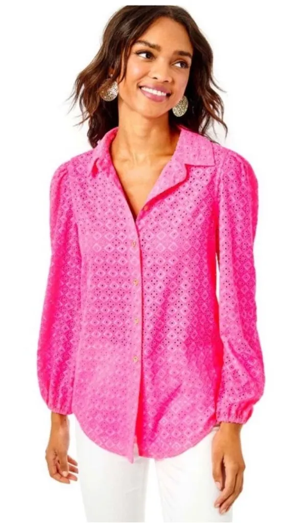 Lilly Pulitzer Sea Breeze Eyelet Hot Pink Button Down Blouse. Size Small - $75 - From Tracy
