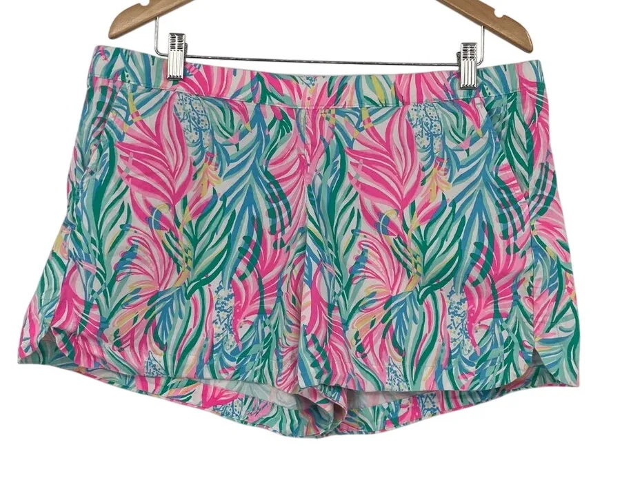 Lilly Pulitzer, tropical print shorts, palm leaf shorts, resort wear, coastal grandmother, preppy summer, vacation outfit, Palm Beach chic, bright tropical, coastal resort, beachwear, coastal cowgirl, colorful shorts, summer essentials, island vibes, vacation core, cabana style, vibrant palm print, relaxed fit, tropical, Ocean View, Sea Turtle Soiree