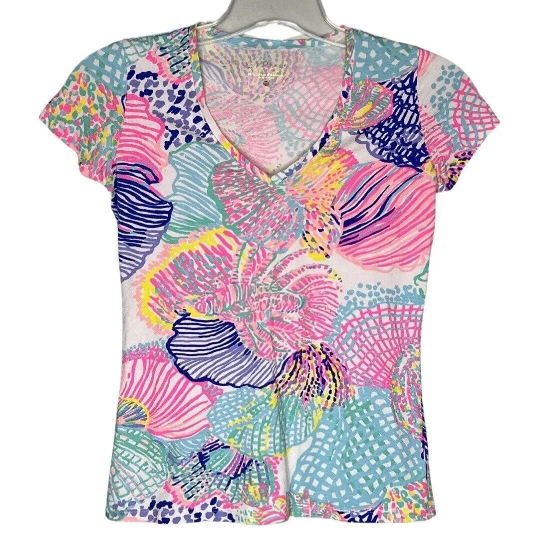Lilly Pulitzer Shirt Womens XS Pink Blue Michele Top Roar of the Seas Preppy Women's Size XS Extra... Show more