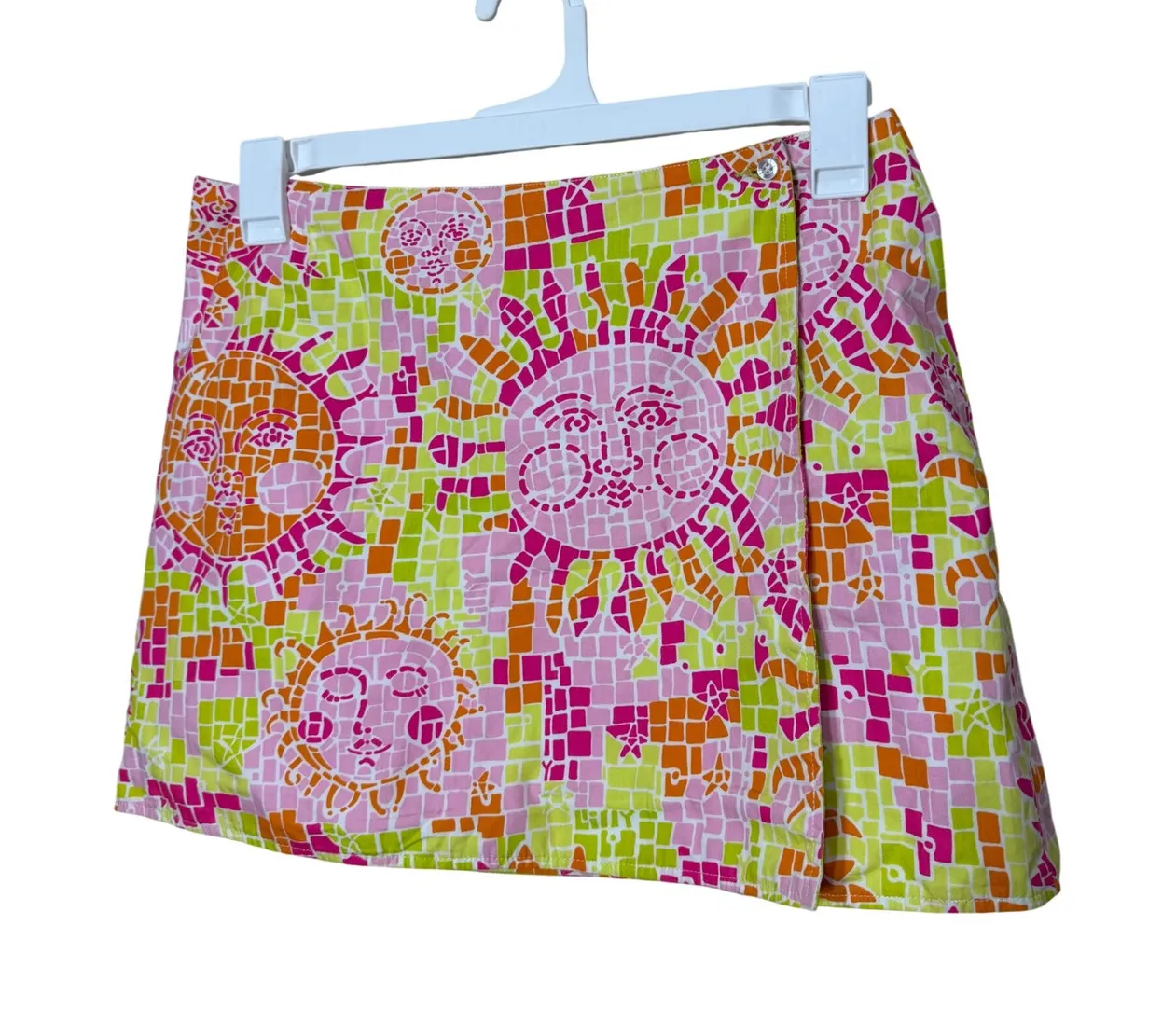 Lilly Pulitzer reversible skirt featuring a vibrant sun mosaic print on one side and a lively floral... Show more