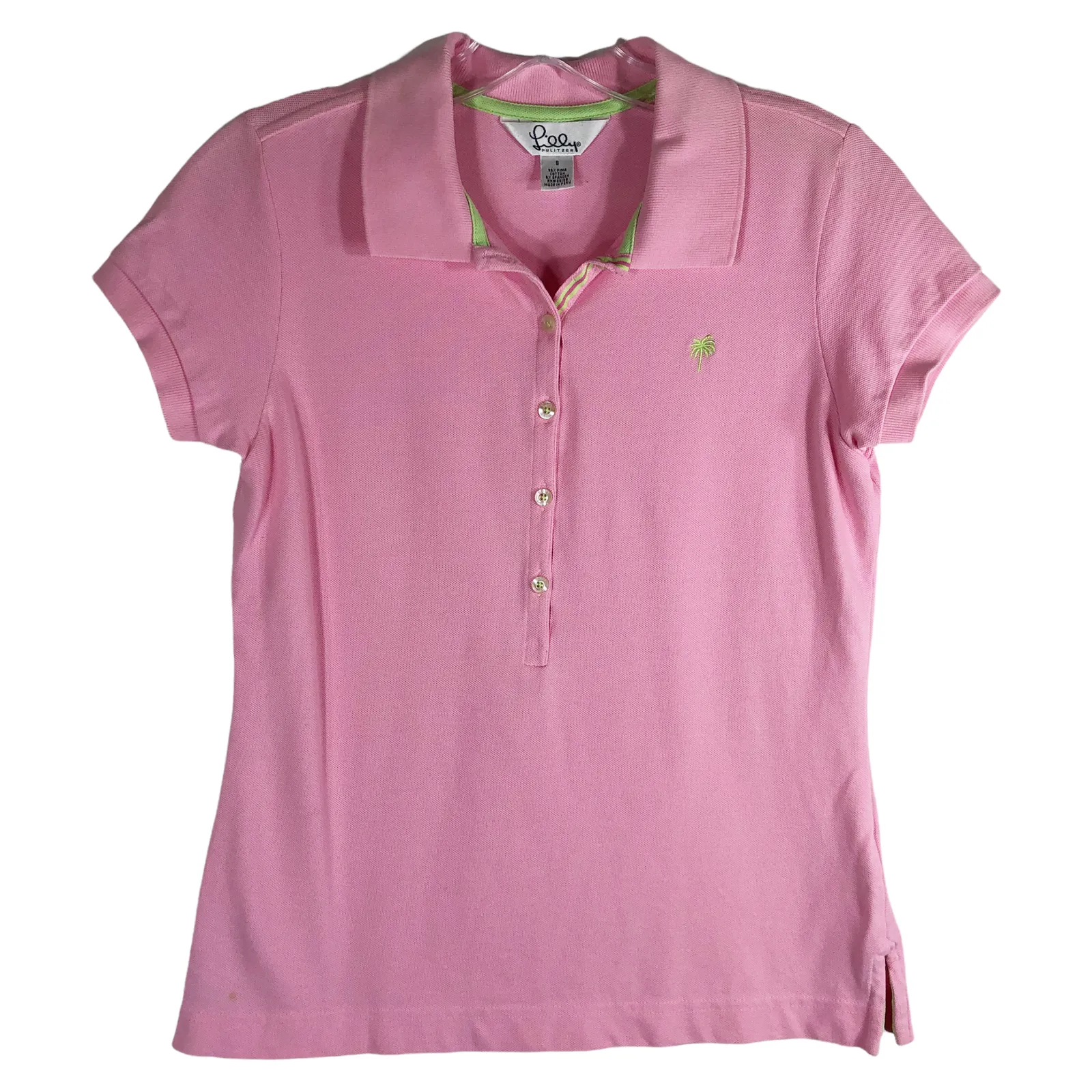 Lilly Pulitzer Small Polo Shirt Pink Green Short Sleeve Half Button Down 600 Chest: 16" across Leng... Show more