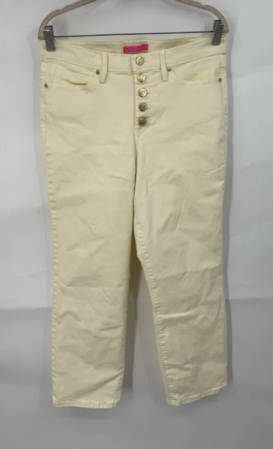 Great pre owned condition with mild wear to the fabric. Size 12. Light pale yellow. Has gold cont... Show more
