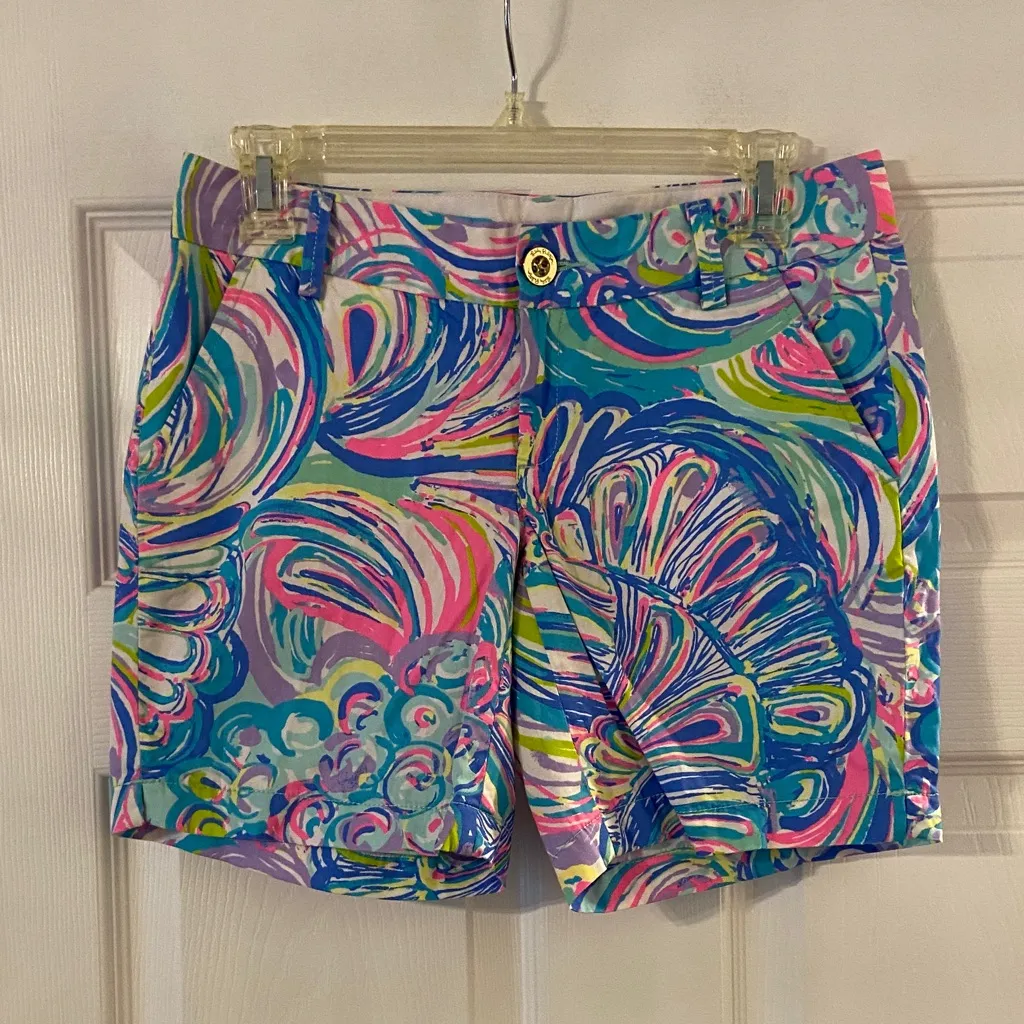 BNWOT two front pockets Chic shorts with a swirl pattern. Features blue, pink, and green hues. Gol... Show more