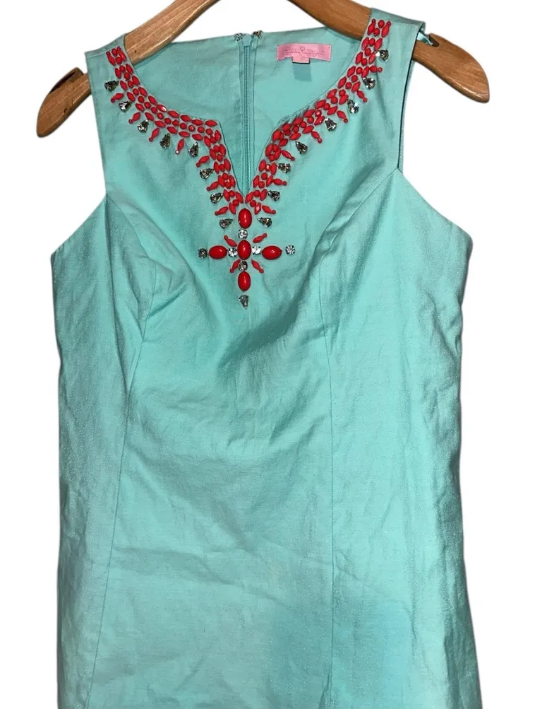Lilly Pulitzer Women’s Size 2 Turquoise Blue Coral Rhinestone Embellished Jackie Tank Top