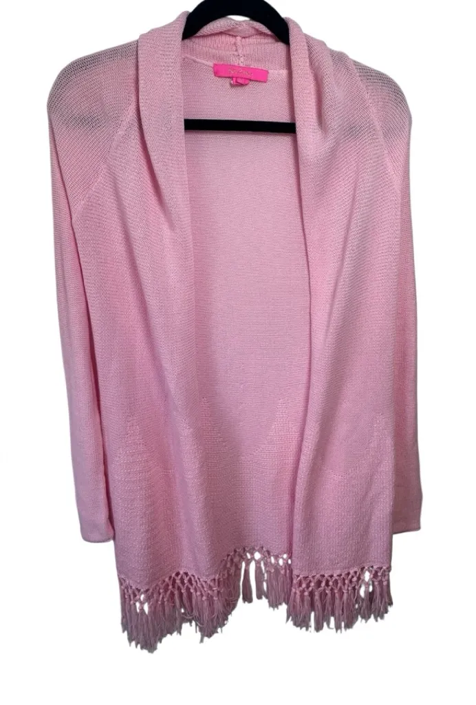 Lilly Pulitzer Tatum Cardigan Coral Long Sleeve Tassels SZ XS Lightweight Flowy. Perfect for the coo... Show more