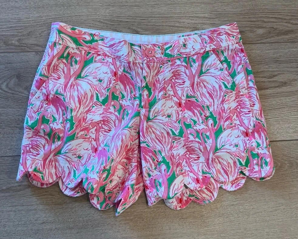 Lilly Pulitzer The Buttercup Short Pink Green Flamingo Scalloped Size 00 - $15 - From Sarah