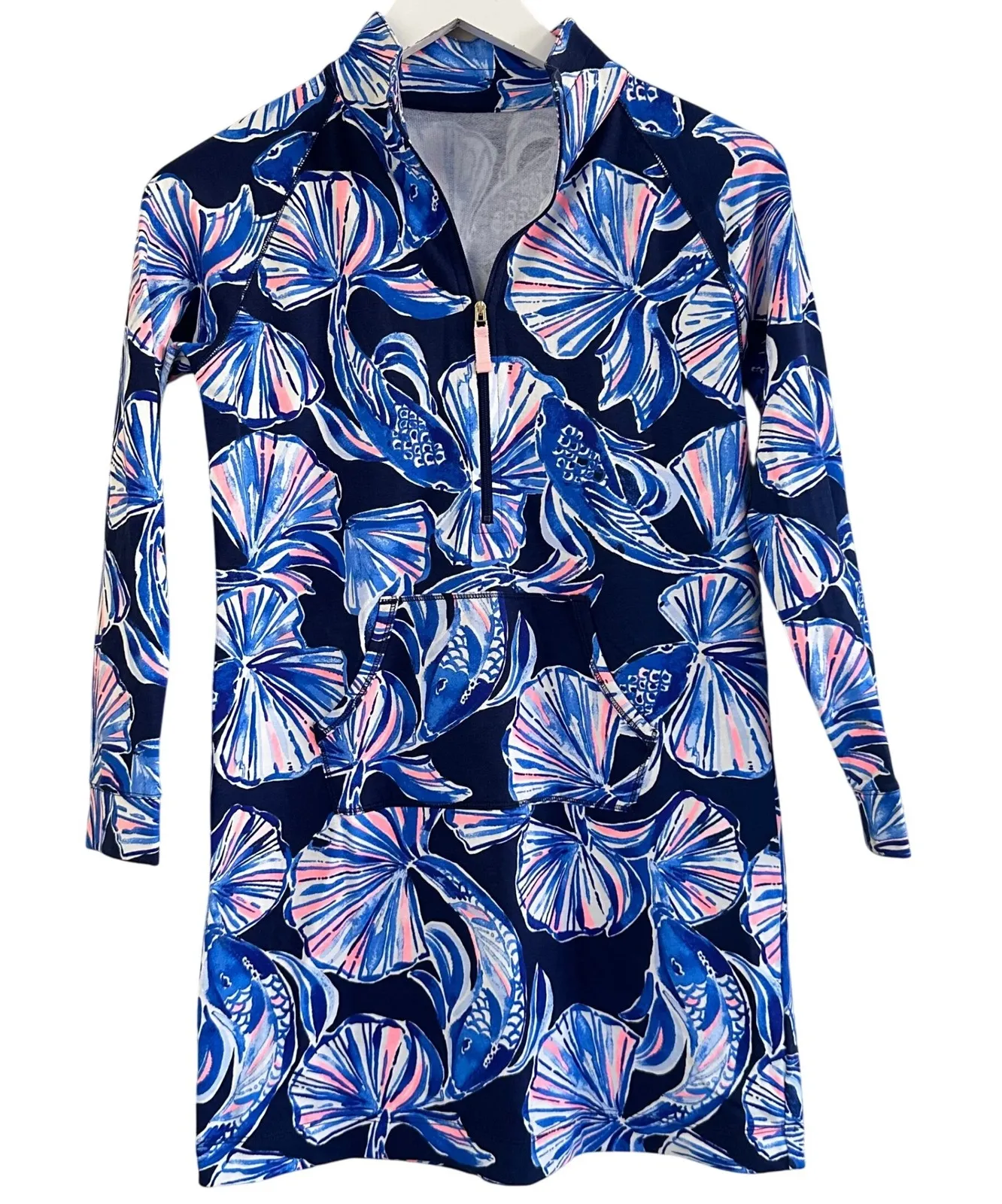 Lilly Pulitzer UPF50 Skipper Popover Dress in Bright Navy in Reel Life Print No Size Tags, Estimat... Show more