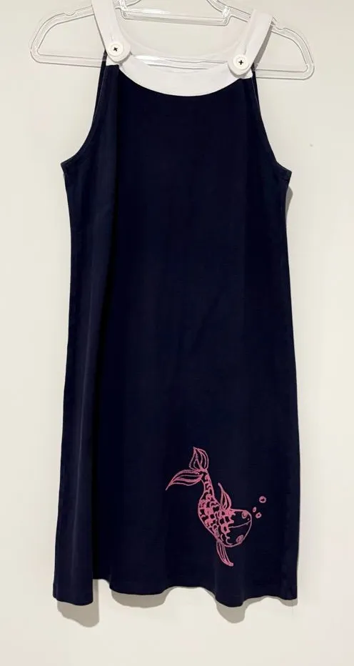 Lilly Pulitzer Vintage coy fish nautical overall dress navy blue pink medium. Cotton blend. Button s... Show more