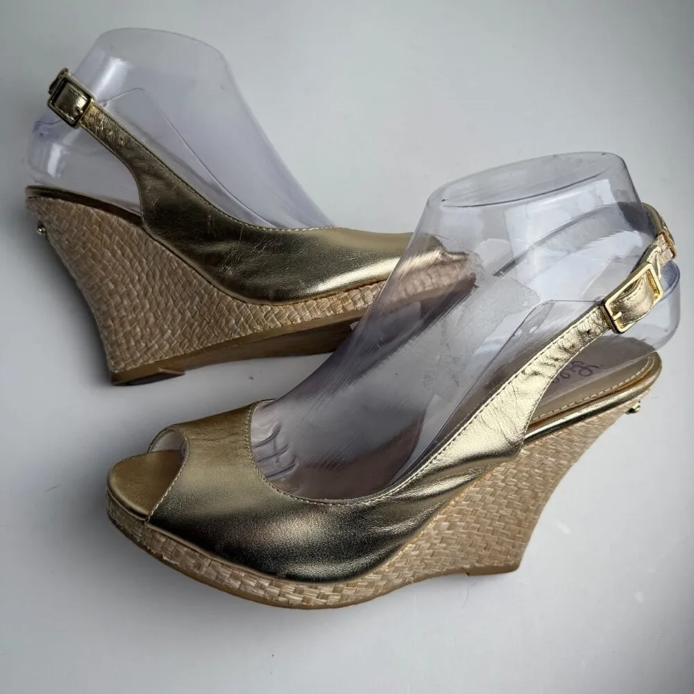Lilly Pulitzer Kristin Slingback Wedge Gold Size 7.5 Size: Womens 7.5, would best fit a size 7 Mea... Show more