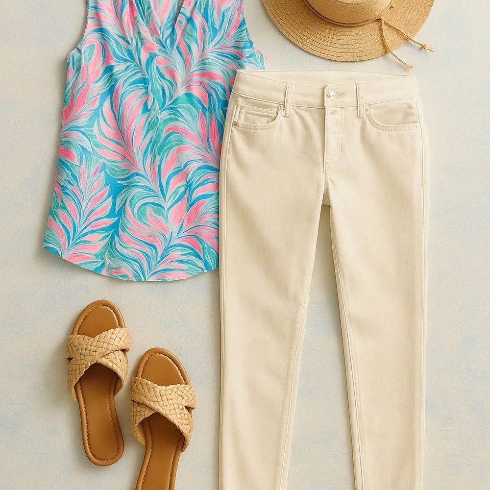 Bright white Lilly Pulitzer Worth Skinny Mini Zip Jeans — a resort-chic staple that flatters every o... Show more