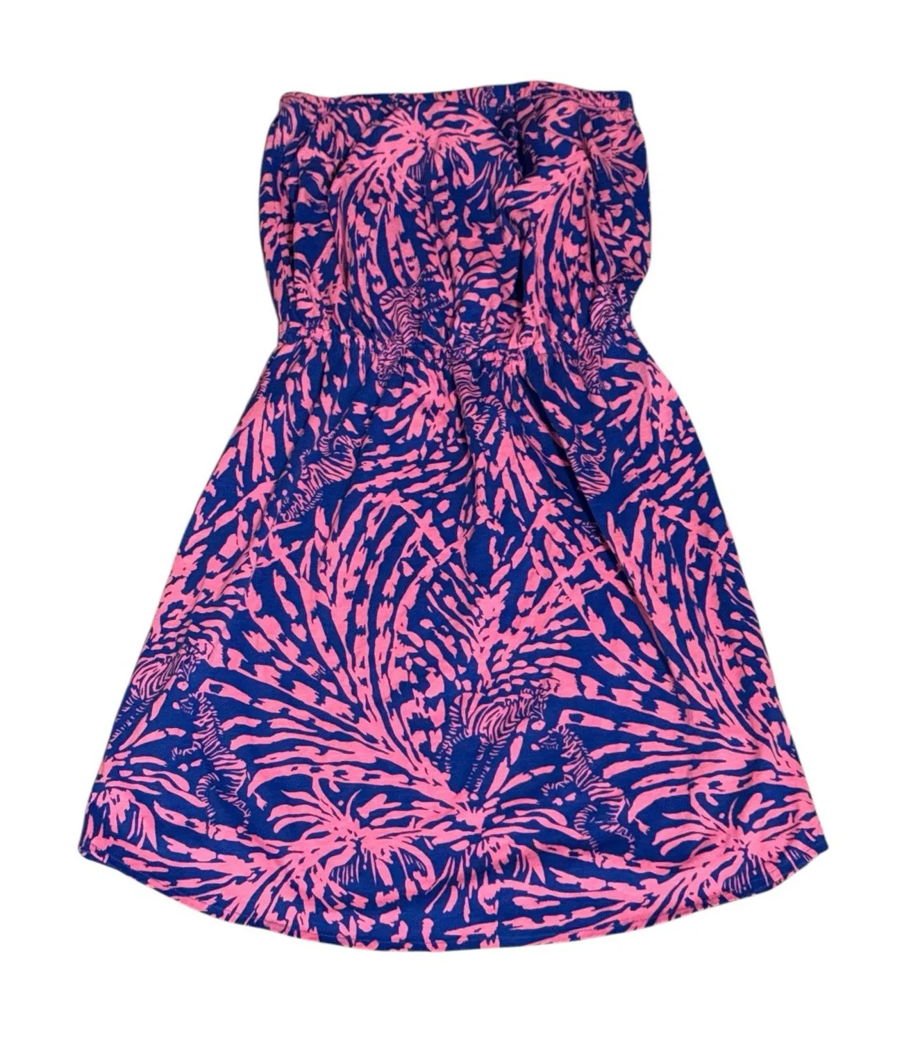 The Lilly Pulitzer Windsor Strapless Dress in pink and blue zebra grass pattern is a stylish and ver... Show more