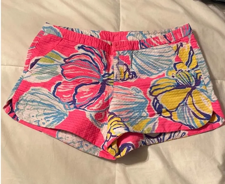 Tropical charm radiates from these Lilly Pulitzer shorts. A vibrant pink backdrop showcases a lively... Show more