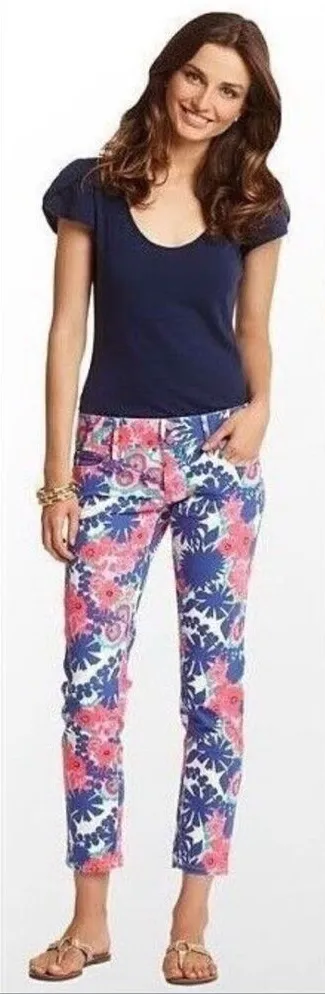 Lilly Pulitzer Worth Skinny Mini Print Secret Garden Floral Cropped Jeans 6 Pink No flaws