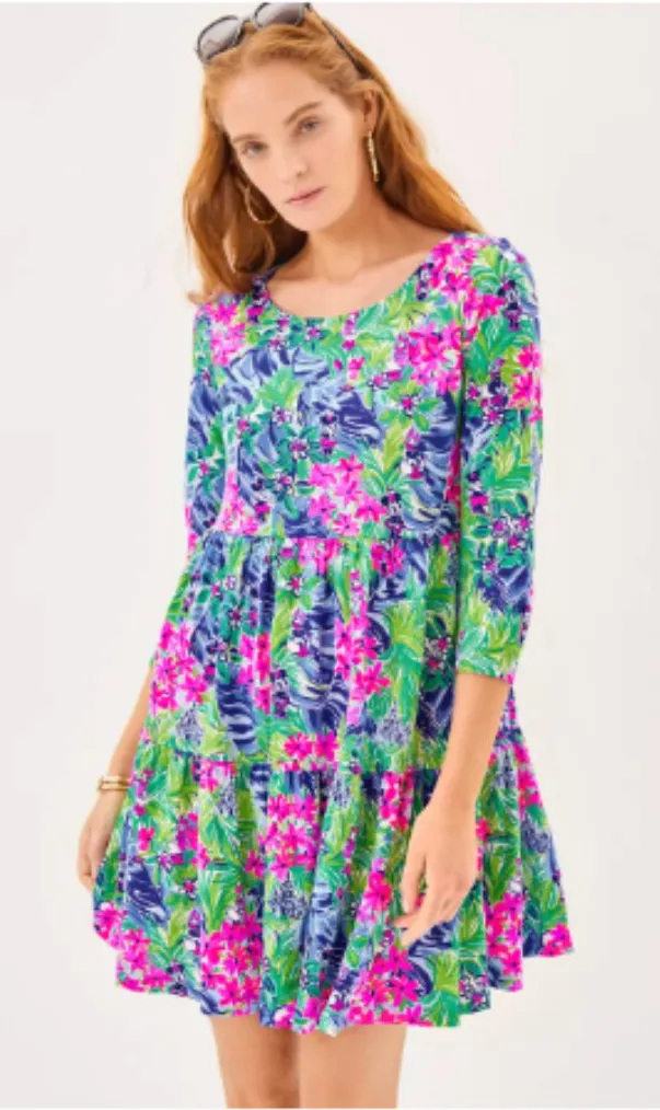 Excellent condition Size S Geanna 3/4 Sleeve Dress Swing fit, tiered dress with a crew neckline a... Show more