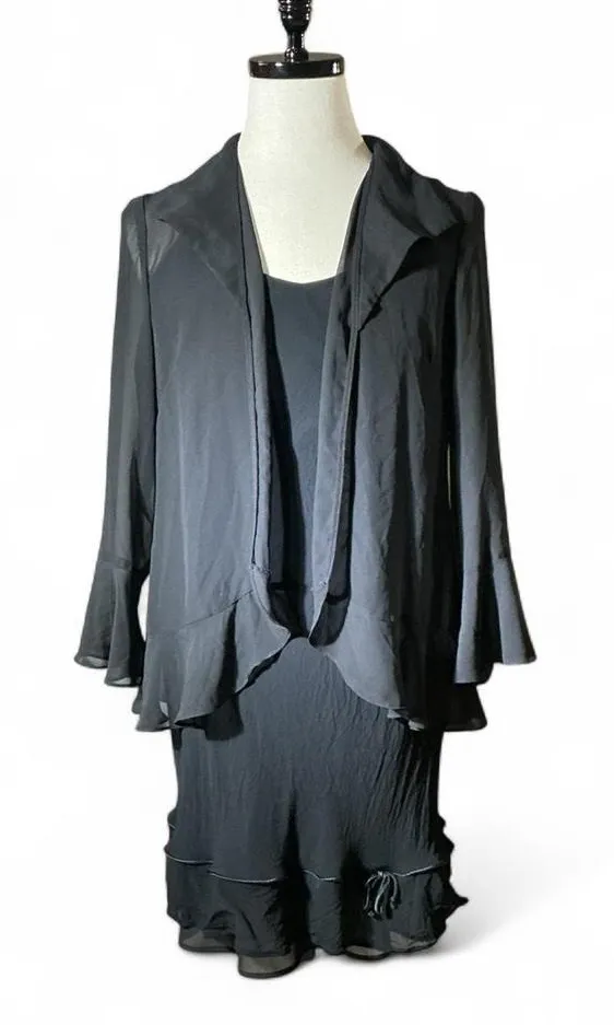 Lily Black Sheer Chiffon Ruffle Layered Dress Jacket Set 2 Piece Set Black sheer chiffon layered dr... Show more