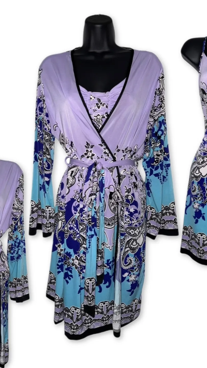 Linea Donatello Floral Paisley Sleepwear 2 Pc Set Robe & Nightie Slip Mini Dress - $27 - From Rachelle