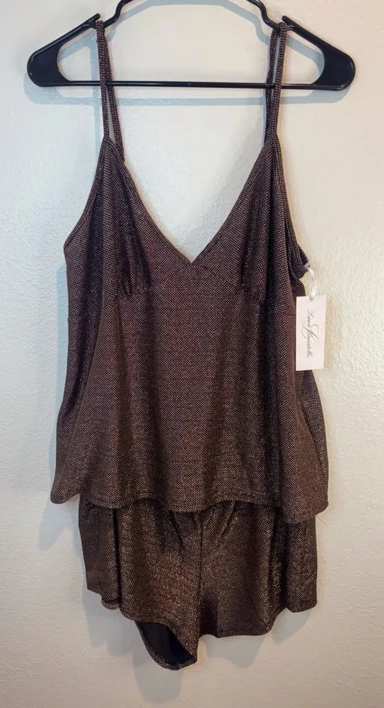 Linea Donatella NWT Women’s Metallic Copper‎ Black Pajama Set Size XL Brown - $22 New With Tags - From Trendy