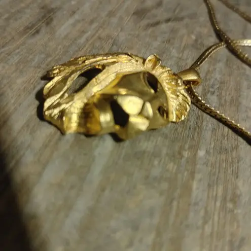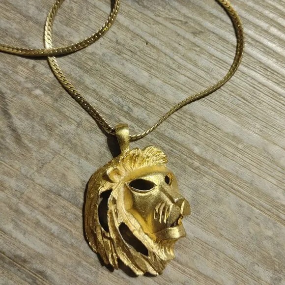 This gold-tone lion head pendant necklace offers a bold statement piece suitable for both men and wo... Show more