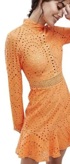 Elevate your wardrobe with the Lioness Eyelet Cutout High Neck Mini Dress, a perfect blend of elegan... Show more