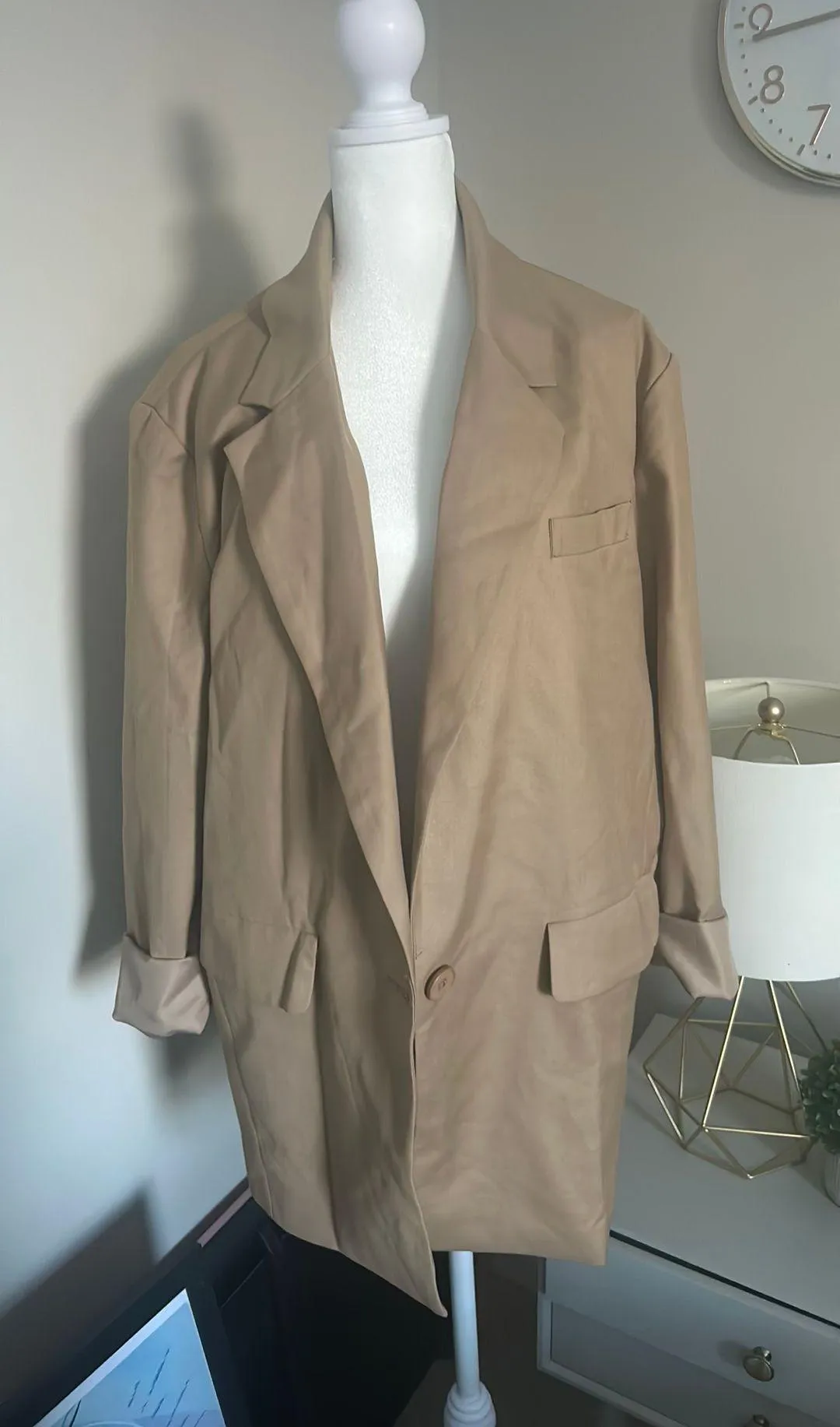 Oversized Khaki/Camel colored blazer. Size small but could fit medium for a more fitted look