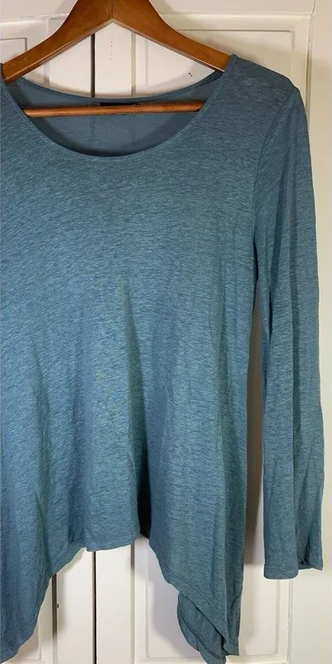 Lisa Bayne Scandi Logom‎ Linen Blend Top Womens XS Lagenlook Layering Teal Shark Green - $22 - From Julie