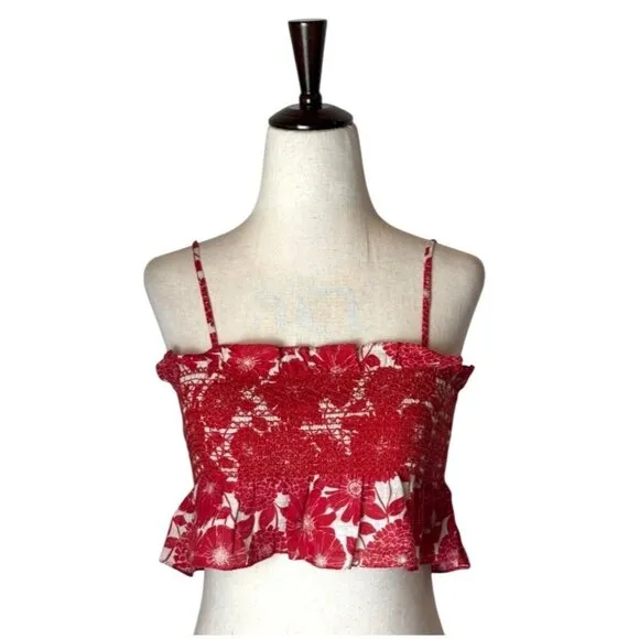 Feeling floral and fabulous? This Lisa Marie smocked crop top with a ruffled hem is an ideal choice for adding a splash of fun to any wardrobe. Its red and white floral pattern ensures you’ll bloom wherever you go. Features: • Squared Neckline • Ruffled Trim • Sleeveles, Thin Straps • Smocked Bodice • Cropped Length • spring, fall, winter, summer • Floral Print • hand wash • Pullover Styling • 100% Cotton Measurements: armpit to armpit 12.5 in length 13 in Great Pre-Owned Condition. (see pics for details) Size II = Size 4-6 All offers welcomed! ❤️ Professional seller, smoke free home and same or next day shipping. Like items for price drops. Receive the 30% off bundle discount when you purchase two or more items. Tags: designer, luxury, colorful, floral, flower, smocked, dainty, romantic, whimsical, ruffle, ruffled, smocked, Summer, Chic, Travel, Outfit, Urban, beachy, Beach, Trendy, stylish, cropped, crop top, sexy, Chic style, Party, club wear, Feminine, travel, wear, boho, bohemian, festival, peasant, cochella, hippie, cottagecore, fairycore, fairy, whimsy, Small, S,
