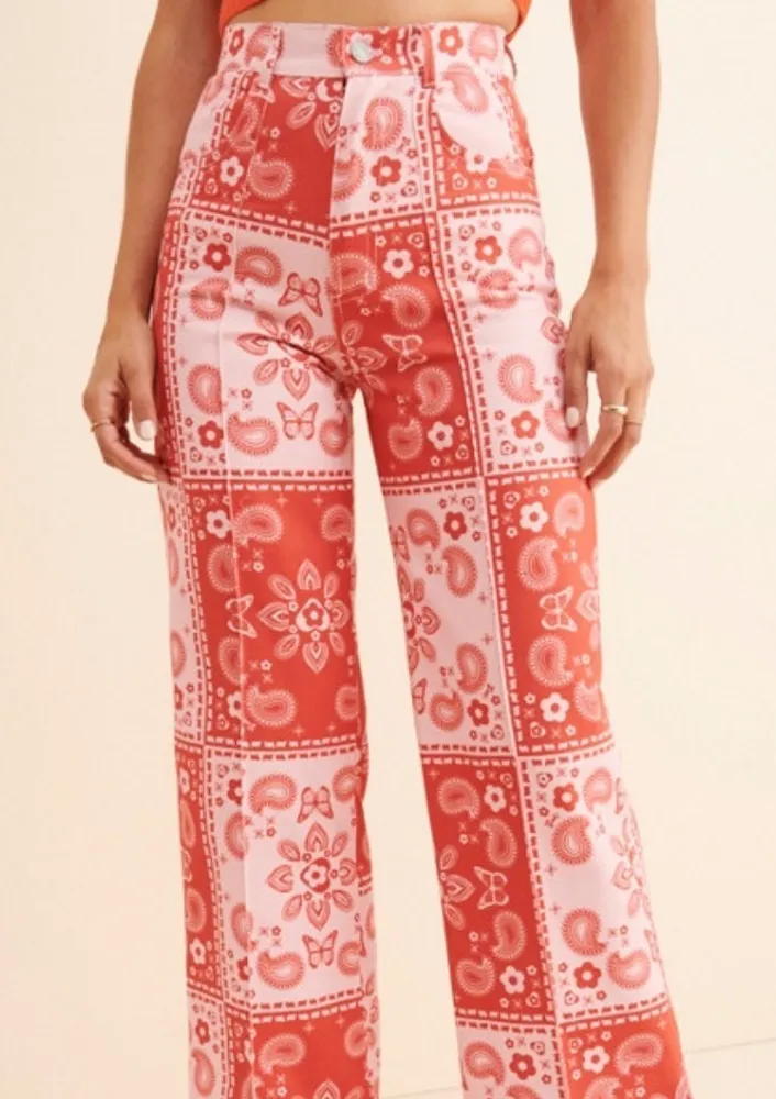 Lisa Says Gah Robyn Paisley Floral Butterfly Pink Wide Leg High Rise Jean 25 - $82 - From Audrey
