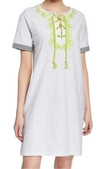 Lisa Todd Women’s Size M White Blue Striped Beach Beyond Tie Front Cover Up T-Shirt Dress. Contrast green rope tie front. Approximate Measurement’s Taken Flat: Chest: 19” Length: 37” ▪️ Excellent used condition. ▪️ The pictures are an important part of the description, please check them out carefully before you buy. You'll get what you see in the pictures. ▪️ Colors shown on-screen can vary from computer to computer. I make every effort to photograph each item individually and list with accuracy. ▪️ Classic, timeless, travel, weekend, vacation, everyday, easy, versatile, iconic, resort, sporty, laidback, effortless, throw on and go, comfortable, cozy, lounge, pool, after, sun, bbq, airy, breathable, picnic ▪️ I’m glad something here caught your eye. Bundle for discounts. Thank you XOXO - Ro