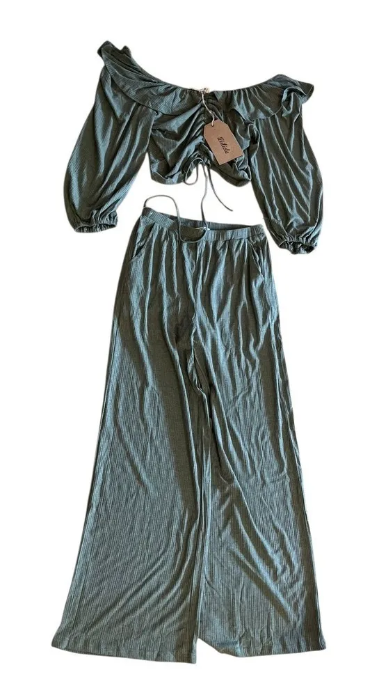 Step into style with this trendy Listicle two-piece set in a beautiful olive green. The off-shoulder... Show more