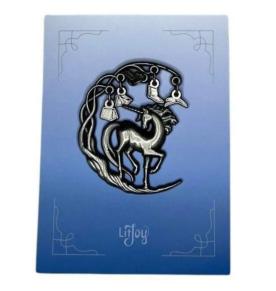 "Our Lunies mean the world to us, so we wanted to show our appreciation with this magical Lunacorn Logo Pin 2024! We've brought the Lunacorn logo to life in stunning detail, just for your pin collection. Our mascot is beautifully rendered under dangly flying books, prancing on an intricately twisted crescent moon. Wear it to show your Lunie pride, and know that we are so glad to have you as part of our community!" -Logo design created by yokaona -Made from zinc alloy with antique tin plating -Measures approximately 2 inches in diameter (5.1 cm) CONDITION: new *All measurements listed are approximate laying flat. *Smoke free home with a hypoallergenic, non-shedding dog.