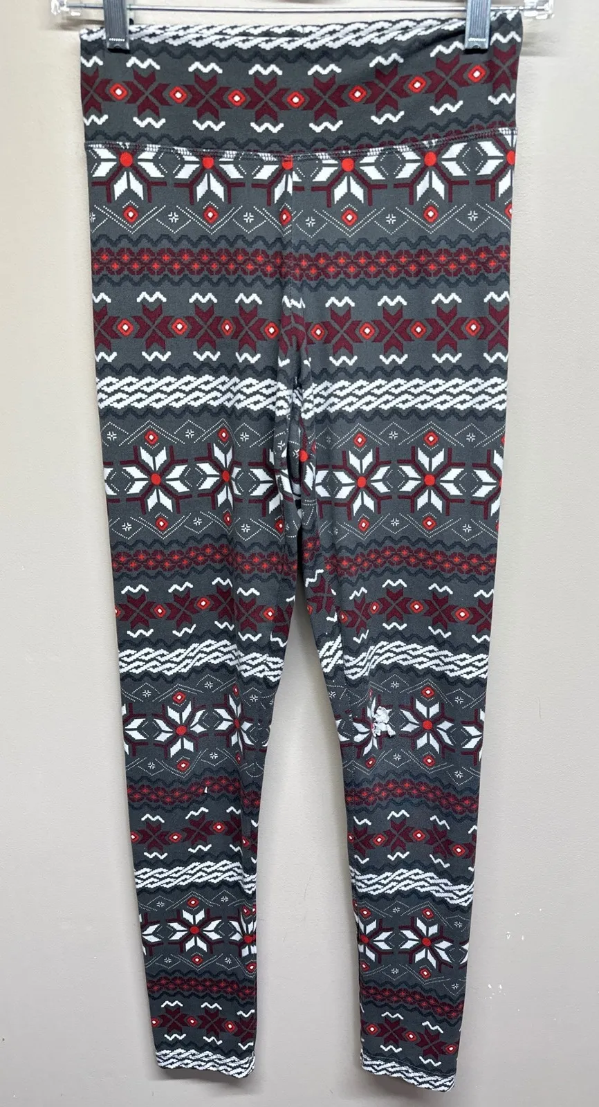 Liv & Piper women's leggings in size medium featuring a festive gray, red, and white snowflake and f... Show more